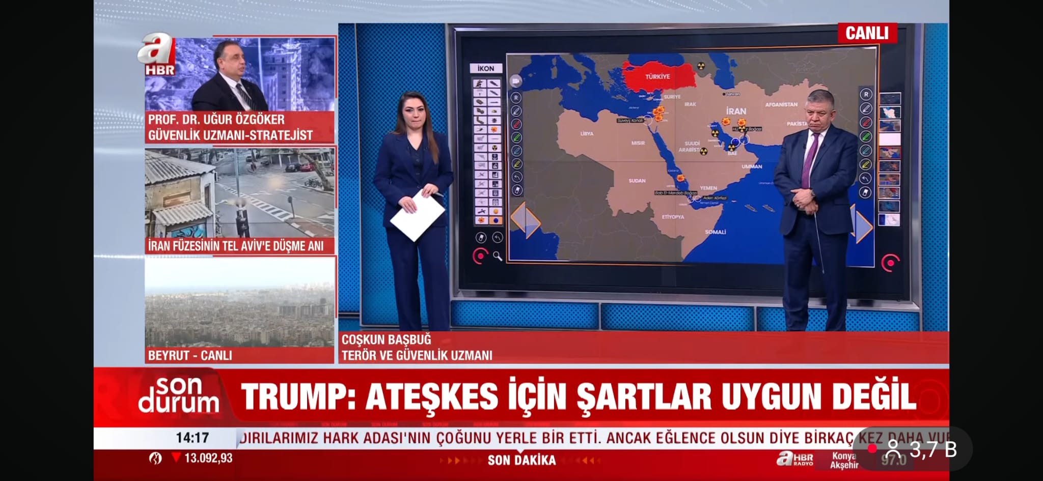 Türkiye’nin konumu hakkında da kritik değerlendirmelerde bulunan Prof. Dr. Uğur Özgöker, Türkiye ve Nahçıvan topraklarına düşen füzelerin bir “yanlışlık” olmadığını, aksine Türkiye’yi de bu ateş çemberinin içine çekmek isteyen bir provokasyon olduğunu belirtmektedir. Türkiye’nin bölgedeki en güçlü aktör olduğunu hatırlatan Özgöker, Milli İstihbarat Teşkilatı ve Dışişleri Bakanlığı’nın yürüttüğü önleyici diplomasinin bölgedeki etnik ve mezhepsel parçalanma senaryolarını şu ana kadar boşa çıkardığını vurgulamaktadır.