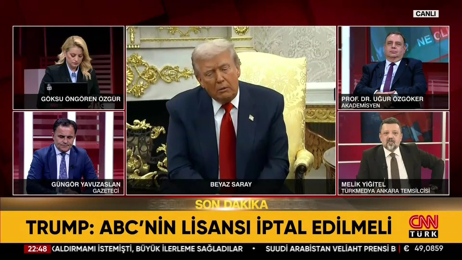 Programın Trump–Selman zirvesine ayrılan ilk bölümünde Prof. Dr. Uğur Özgöker, zirvenin yalnızca ekonomik değil, jeopolitik sonuçları bakımından da kritik olduğunu belirtmiştir. Trump’ın “21 trilyon dolarlık yatırım” açıklamasına kuşkuyla yaklaşmış, bu tür rakamların genellikle “alışveriş hacmi” kavramı altında şişirildiğini söylemiştir. Ona göre bu açıklamalar, iç politikada propaganda malzemesi niteliği taşımakta; somut ekonomik karşılığı ise sınırlı kalmaktadır.