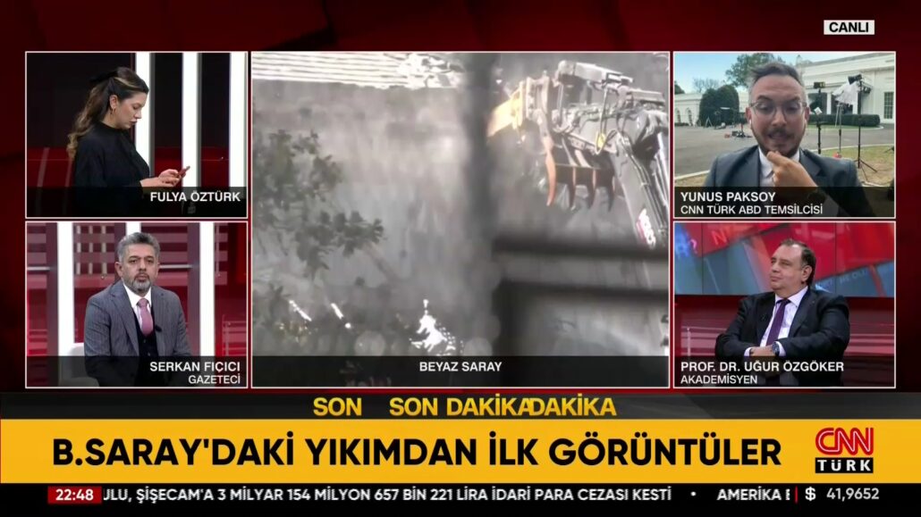 Programda Özgöker, ABD’nin iç siyasetindeki belirsizliklerin de dış politikaya doğrudan yansıdığını, Beyaz Saray’da yaşanan yönetim çatışmalarının küresel karar mekanizmalarını etkilediğini vurguladı. “Kaçak inşaat” tartışması olarak anılan Beyaz Saray’daki kriz, sembolik olarak Amerikan sisteminin içten çürüdüğünü ve kurumsal krizlerin artmakta olduğunu gösteriyor.