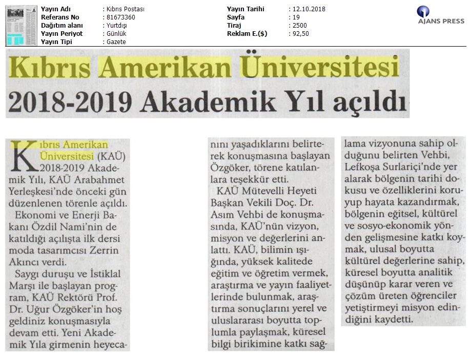 KIBRIS AMERİKAN ÜNİVERSİTESİ “GİRİŞİMCİLİK” TEMALI 2018-2019 EĞİTİM-ÖĞRETİM YILI AÇILIŞ TÖRENİ YAPILDI Facebook Twitter LinkedIn WhatsApp Email
